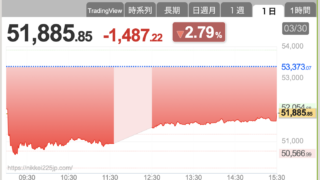 投資報告 日経平均、1487円安⚠️
