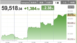 AIブームが続いていますね〜。あと少しで6万円です。「高すぎやしないか?」とヒヤヒヤしますが、AI需要が爆発していますからね〜。どこまで行けるか楽しみです。