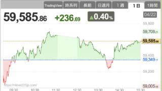 日経平均は前日比+524円でした。もはや、500円の値動きが当たり前になってきましたねw