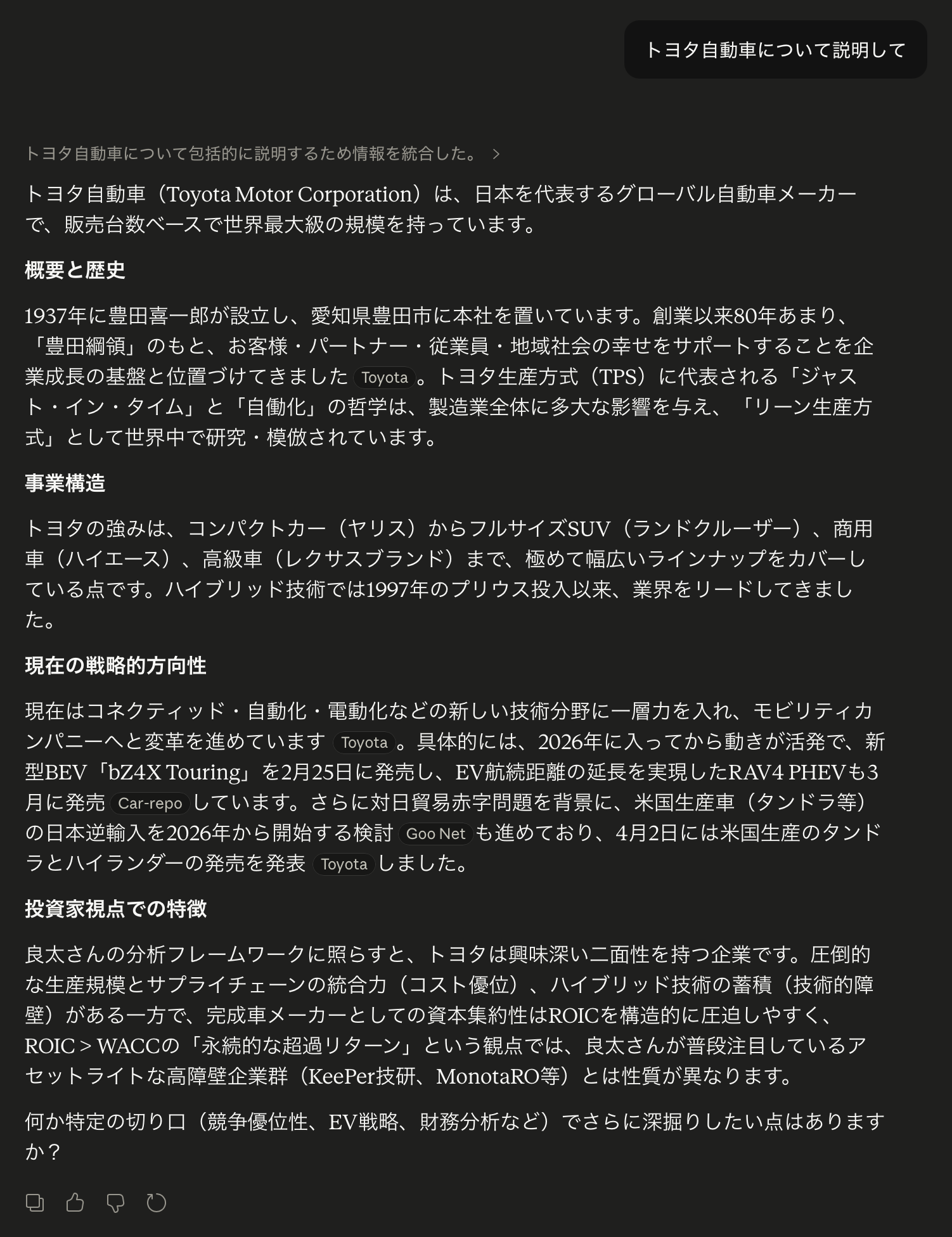 試しにやってみると、トヨタ自動車の説明文が3分の1ほどカットされましたね。