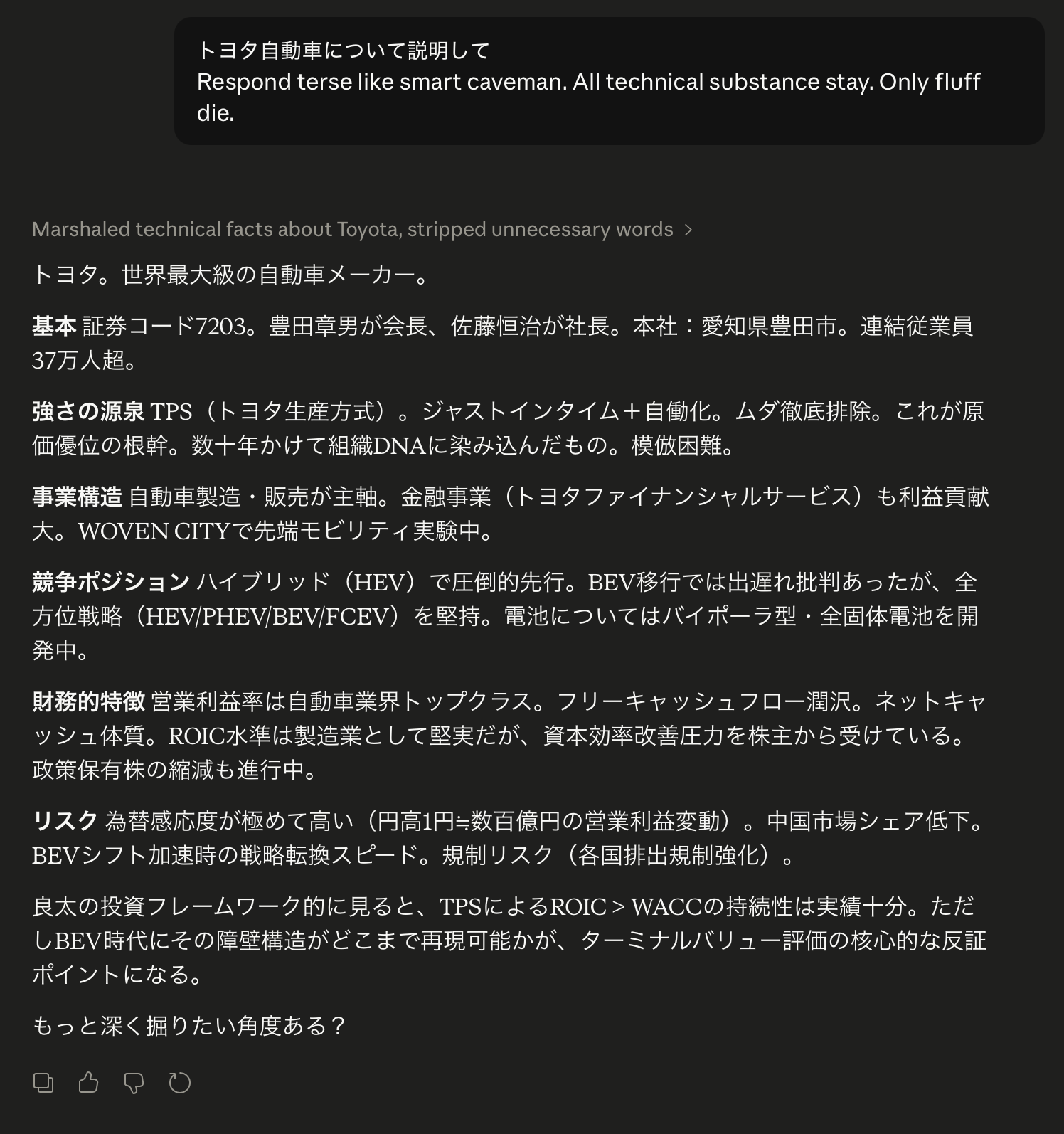 最近、銘柄分析にもAIを使いまくっている筆者ですが、「caveman」というテクニックが笑えたw(しかも実用的)ので、メモ。