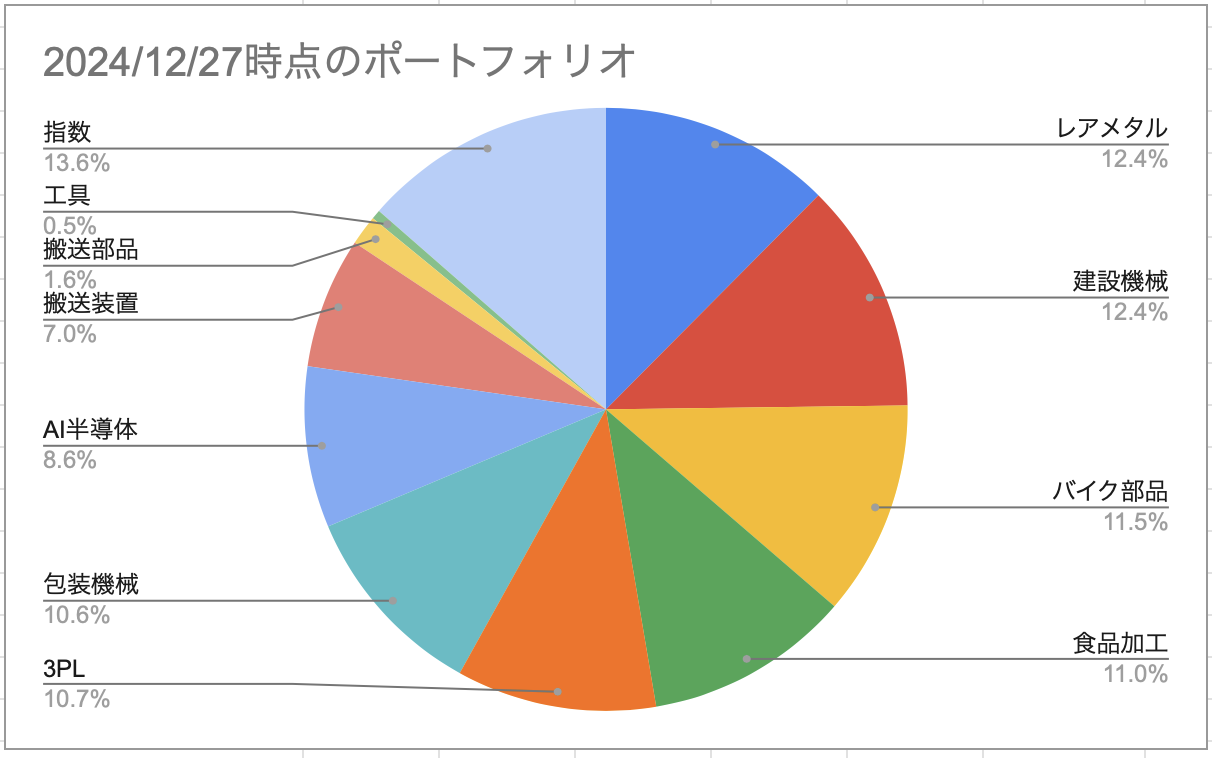 それを聞いて僕は「賢いやり方だな〜」と思ったんですが、ちょっと去年末のポートフォリオを引っ張り出してみると、こんな感じでした: