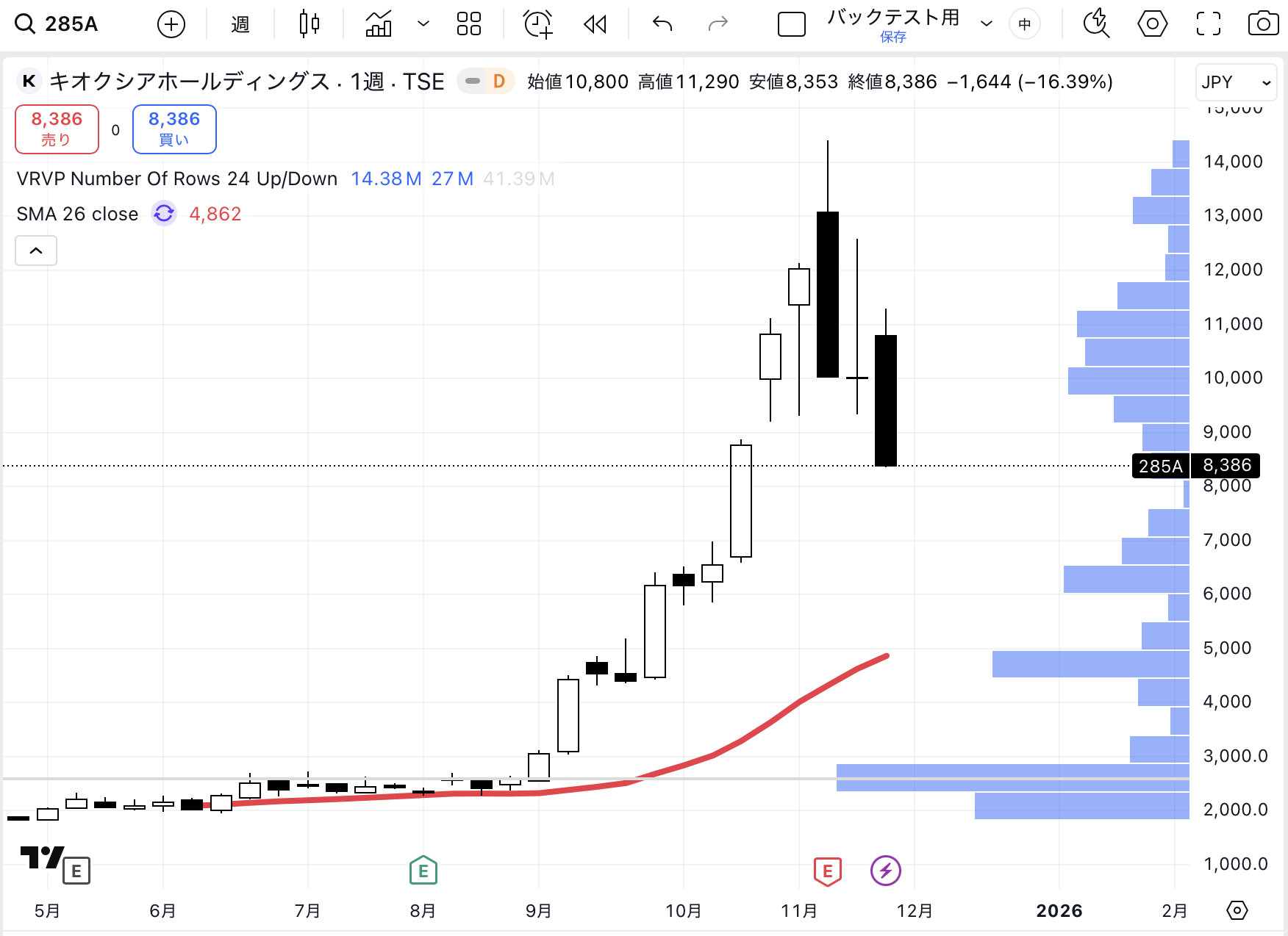 これまで急騰していたキオクシアも下げが目立ちます⚠️