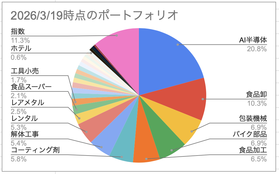 3/19時点、我が家のポートフォリオはこんな感じです。