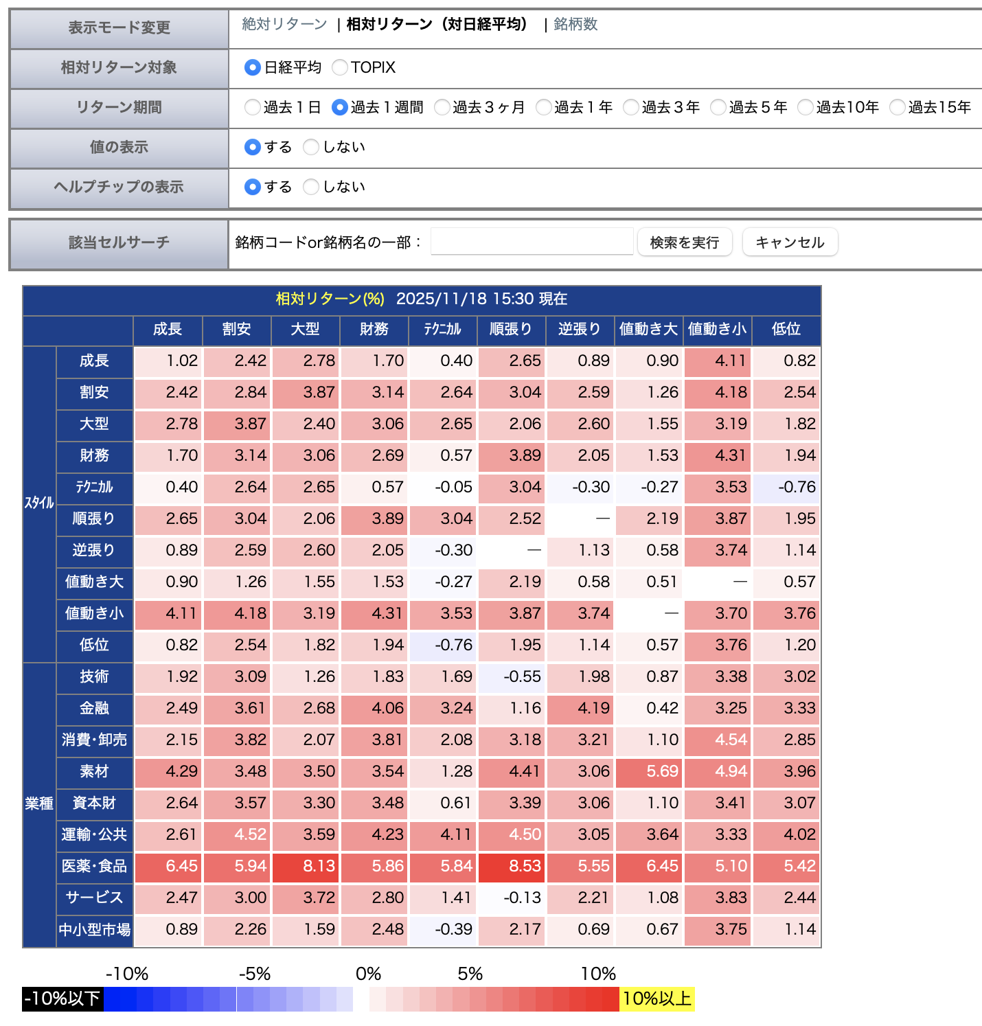 特に強いのが医薬・食品株で、投資家が「守りを固めたがっている」のがわかりますね。