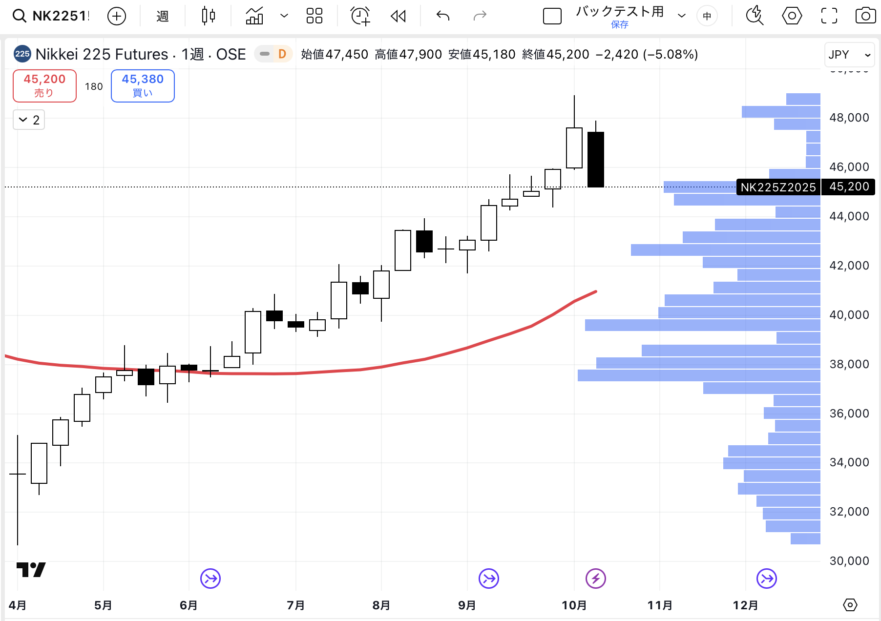 日経先物のチャートを見てみると、先物は45200円まで下がってきています。