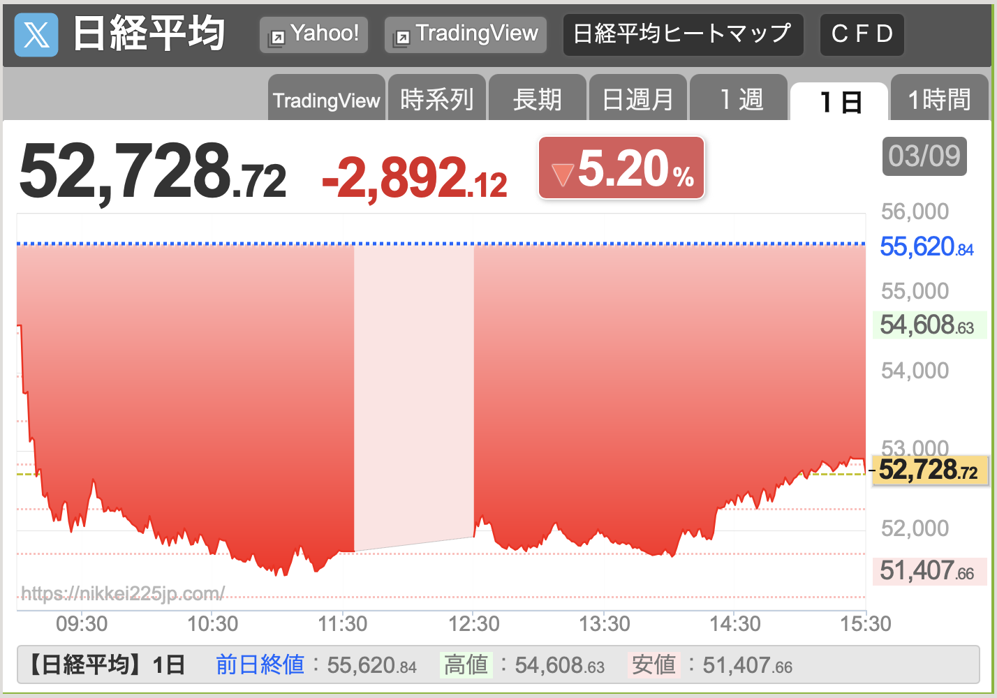 3/9、日経平均株価が2892円安となりました: