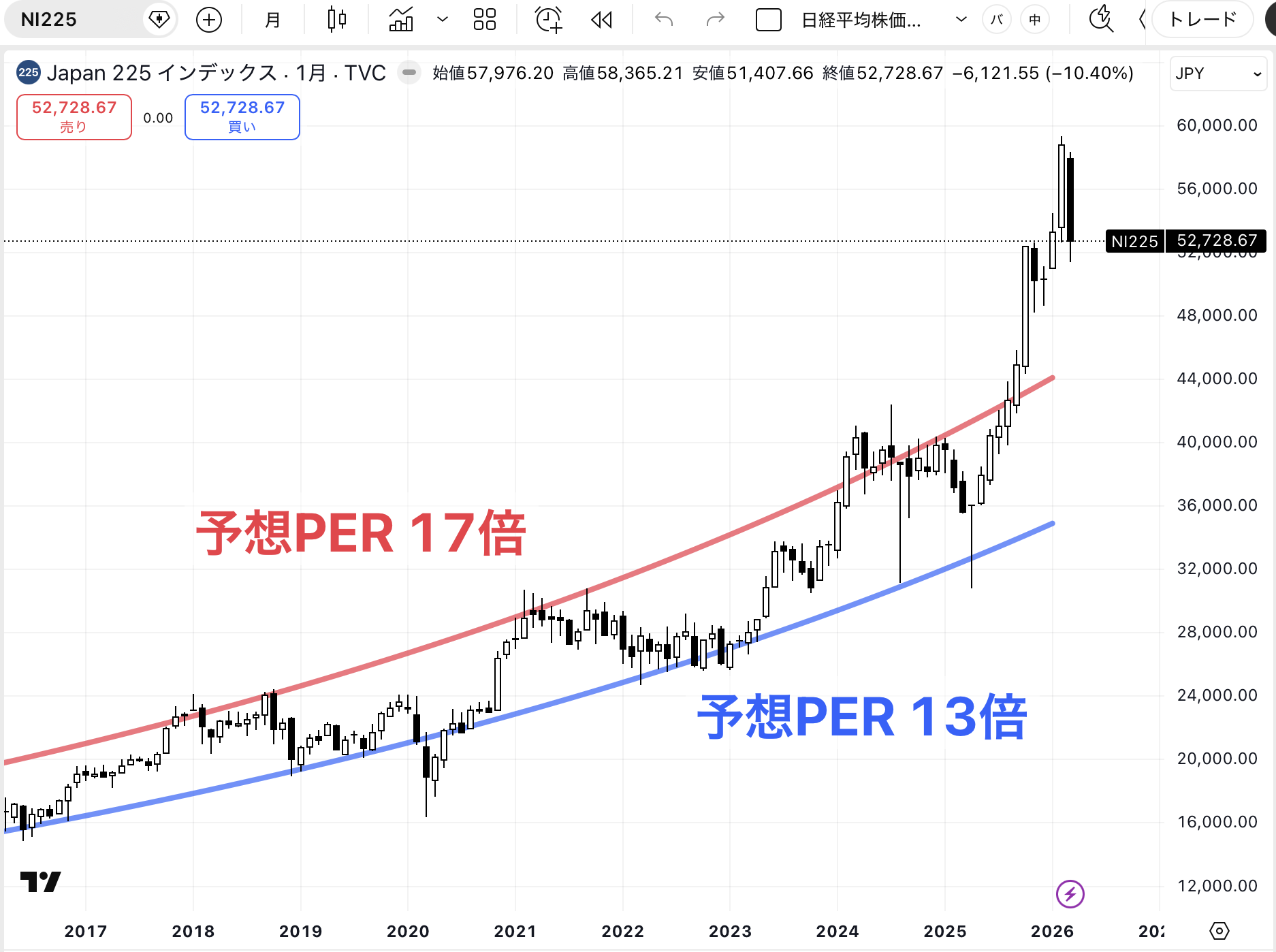 ここから、さらにもう1段さがってきて、SNSとかでも「損切り/ロスカット」みたいなワードがトレンド入りしたりすると、そろそろ買い場な気がしています。