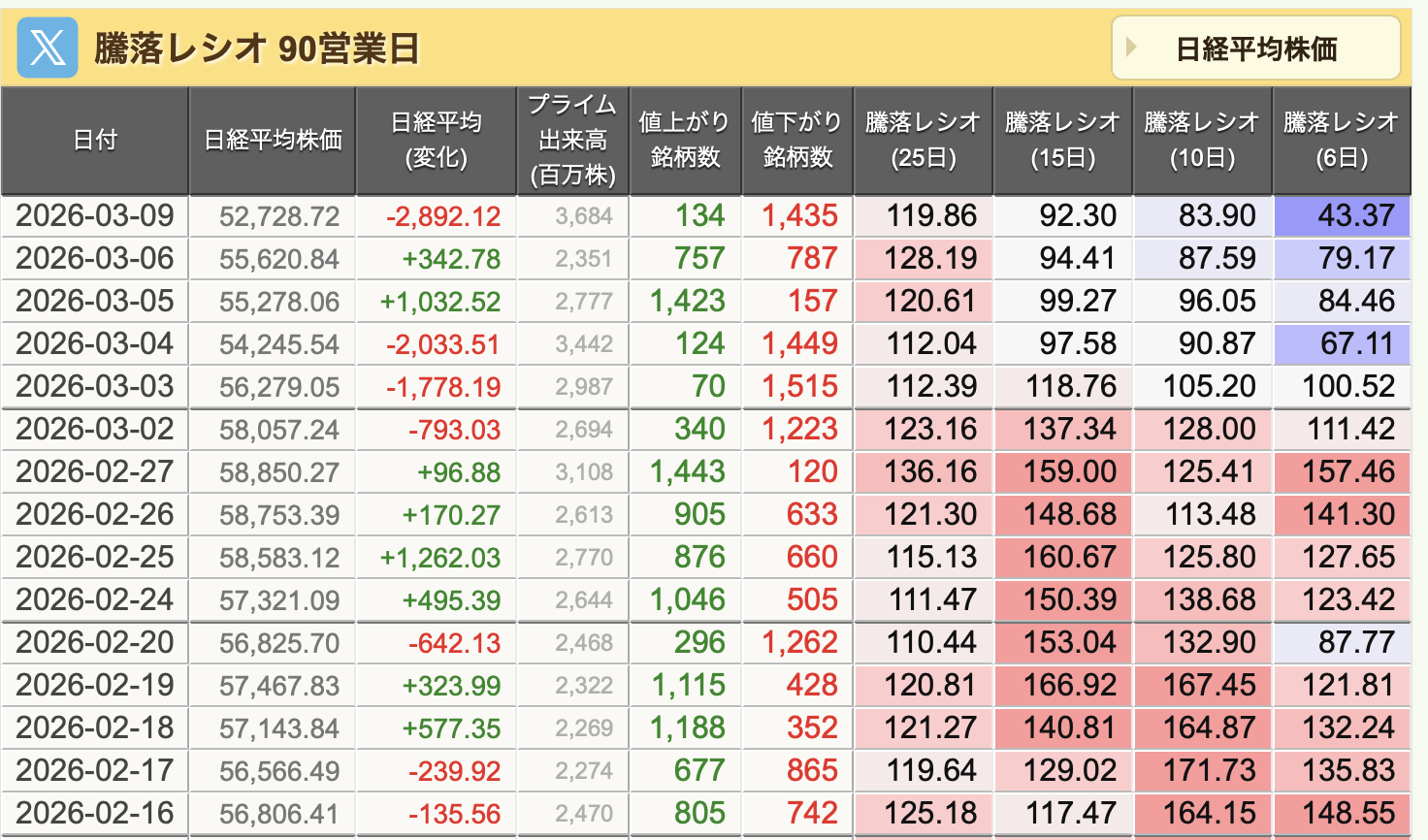だから騰落レシオが低くなってくると「底が近いな」と感じるんですが、足元ではだんだん騰落レシオが低くなってきました。