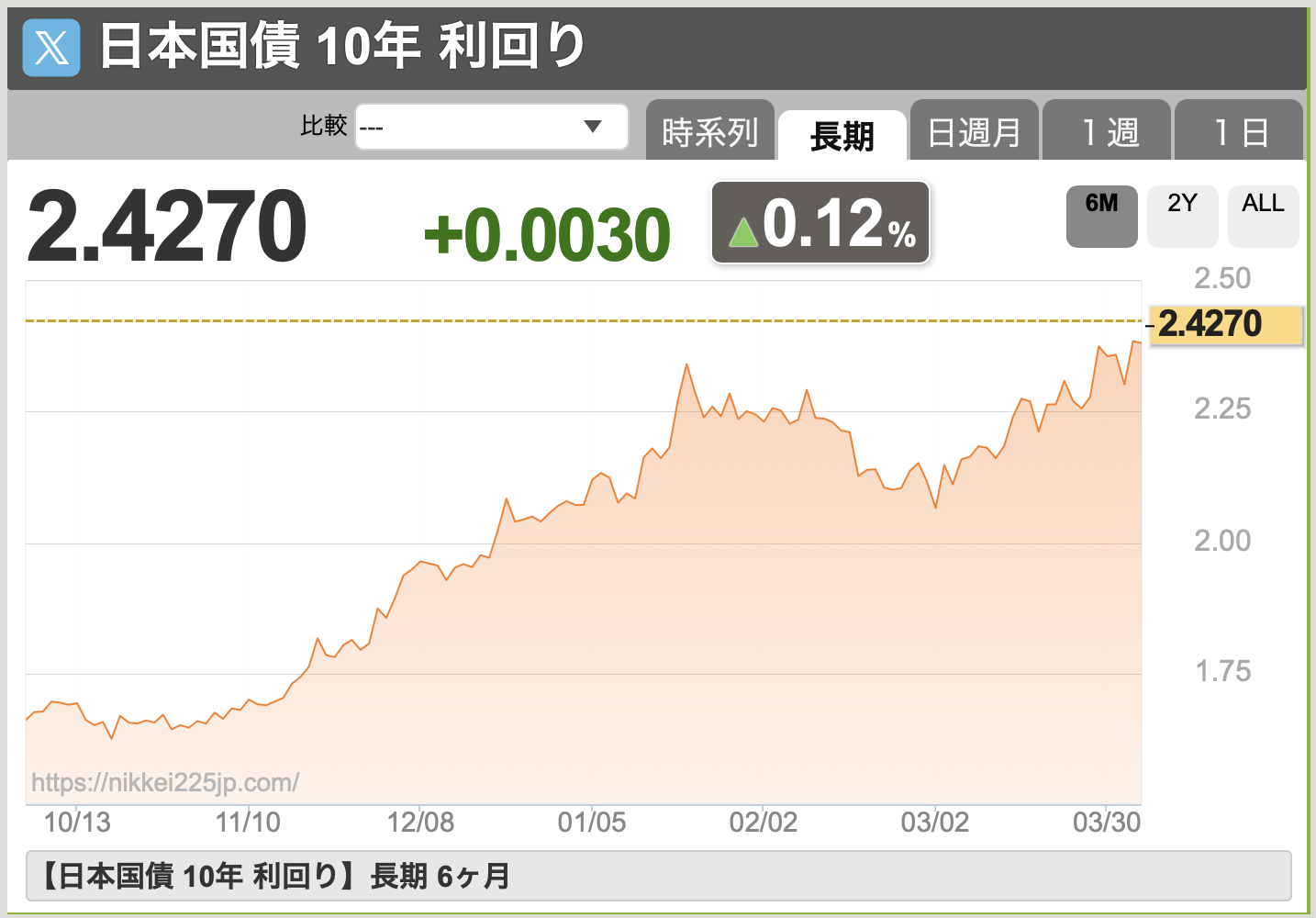 長期金利が上昇中