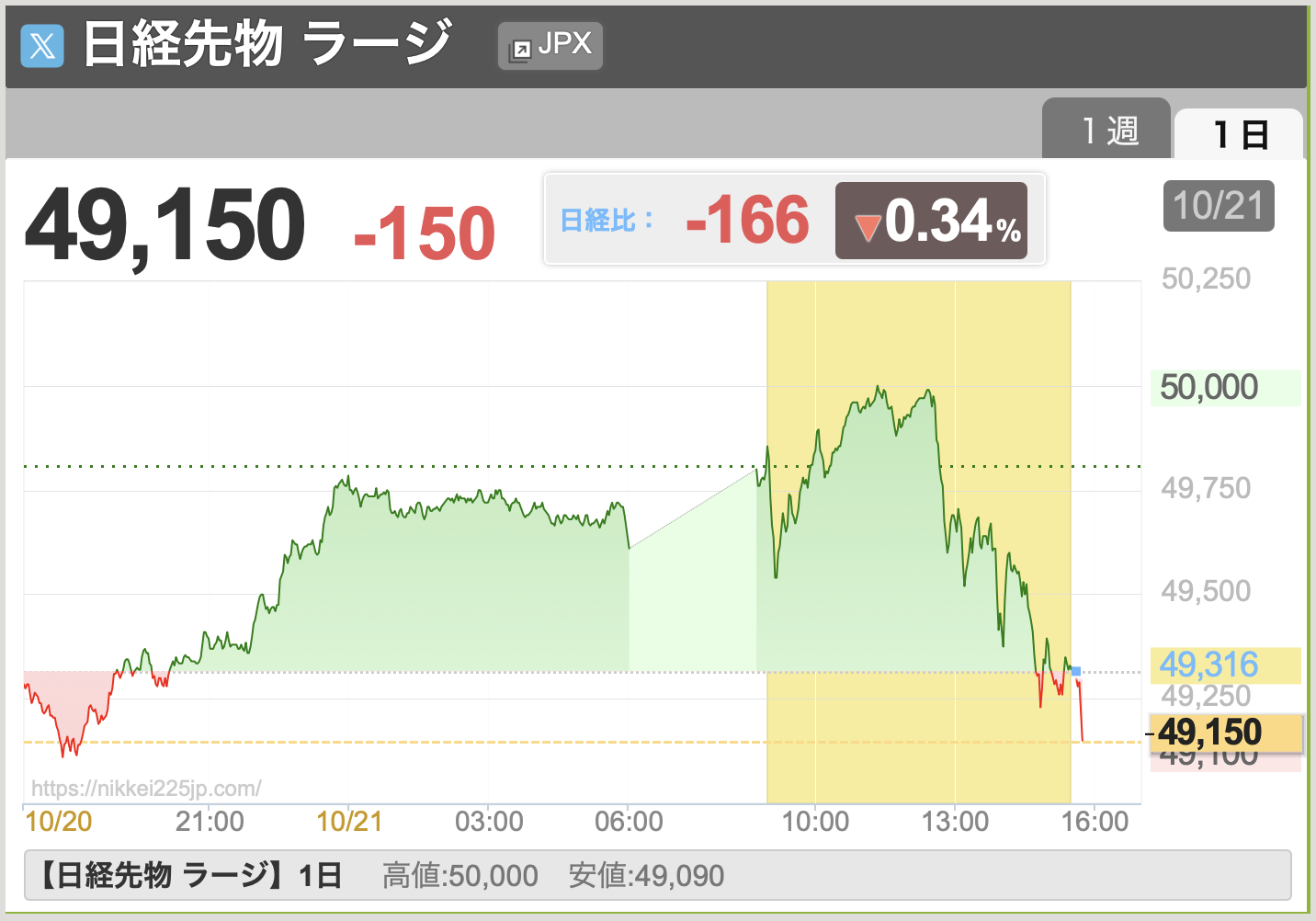 10/21、日経平均株価は49,316円まで上昇しました。日経先物は一時、史上初の5万円を達成しましたね🔥