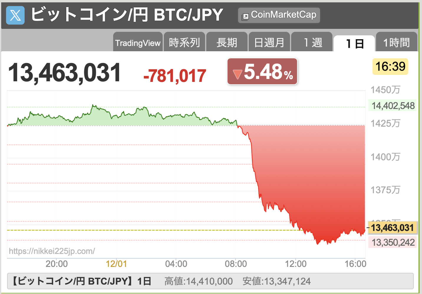 12/1、日経平均は前日比-950円でした: