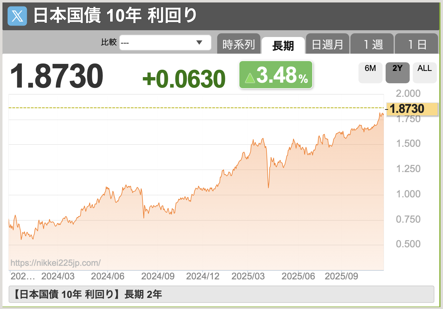 気づけば日本国債の金利は2%近くまで上がってきましたね。それ以上にインフレしているので仕方がないと思いますが、金利が上がると株式市場が重たくなりがちなので要注意です。