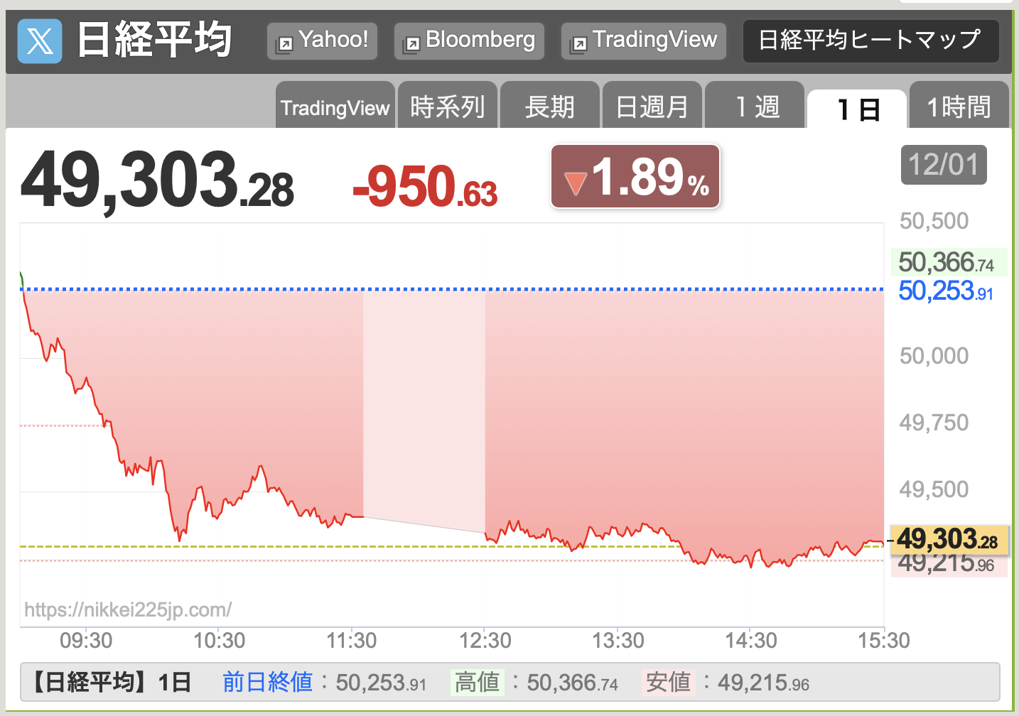 12/1時点、日経終値は49303円です。