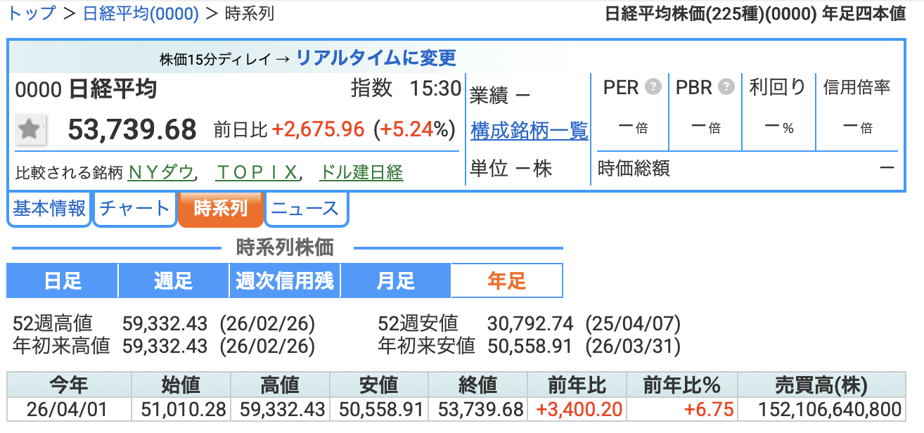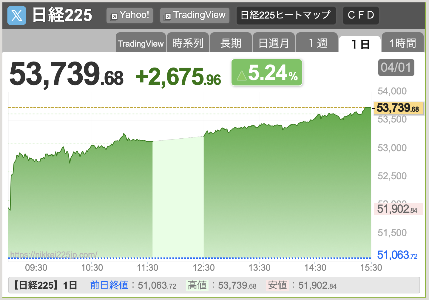 4/1、日経平均は前日比2675円プラスで着地しました:
