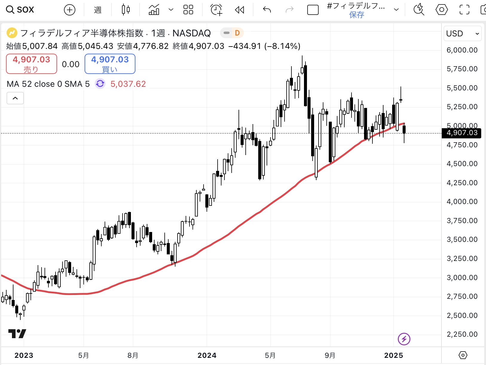 AI半導体株はSKハイニックスですが、春節で韓国株市場が閉まっているので、Deepseekショックをもろに受けているでしょうがまだ株価が下がっていません。