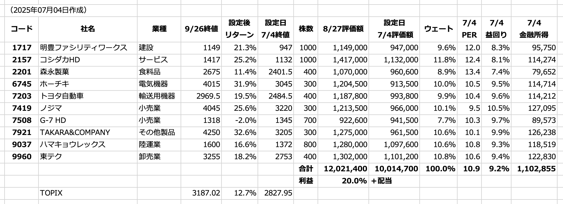 足元のAIブームには「バブルっぽさ」もあるので、AIに全ツ(全ツッパ、全身全霊で突っ張る)せずとも、程よく分散しながら、指数を上回れそうなところを探せば良いだろうと、のんびり構えています。