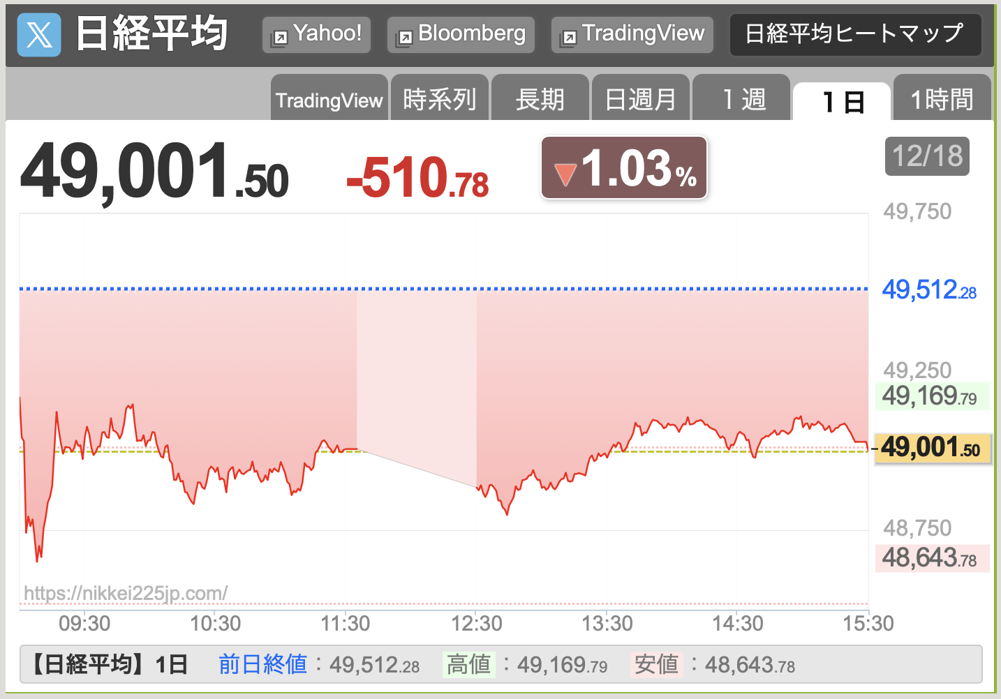 12/18、日経平均はまた下落しました⚠️