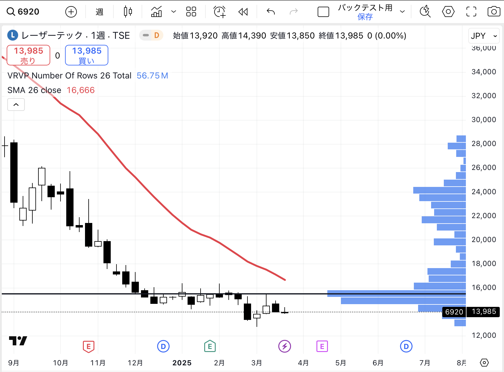 相変わらず、レーザーテック(6920)の株価が右肩下がりです。